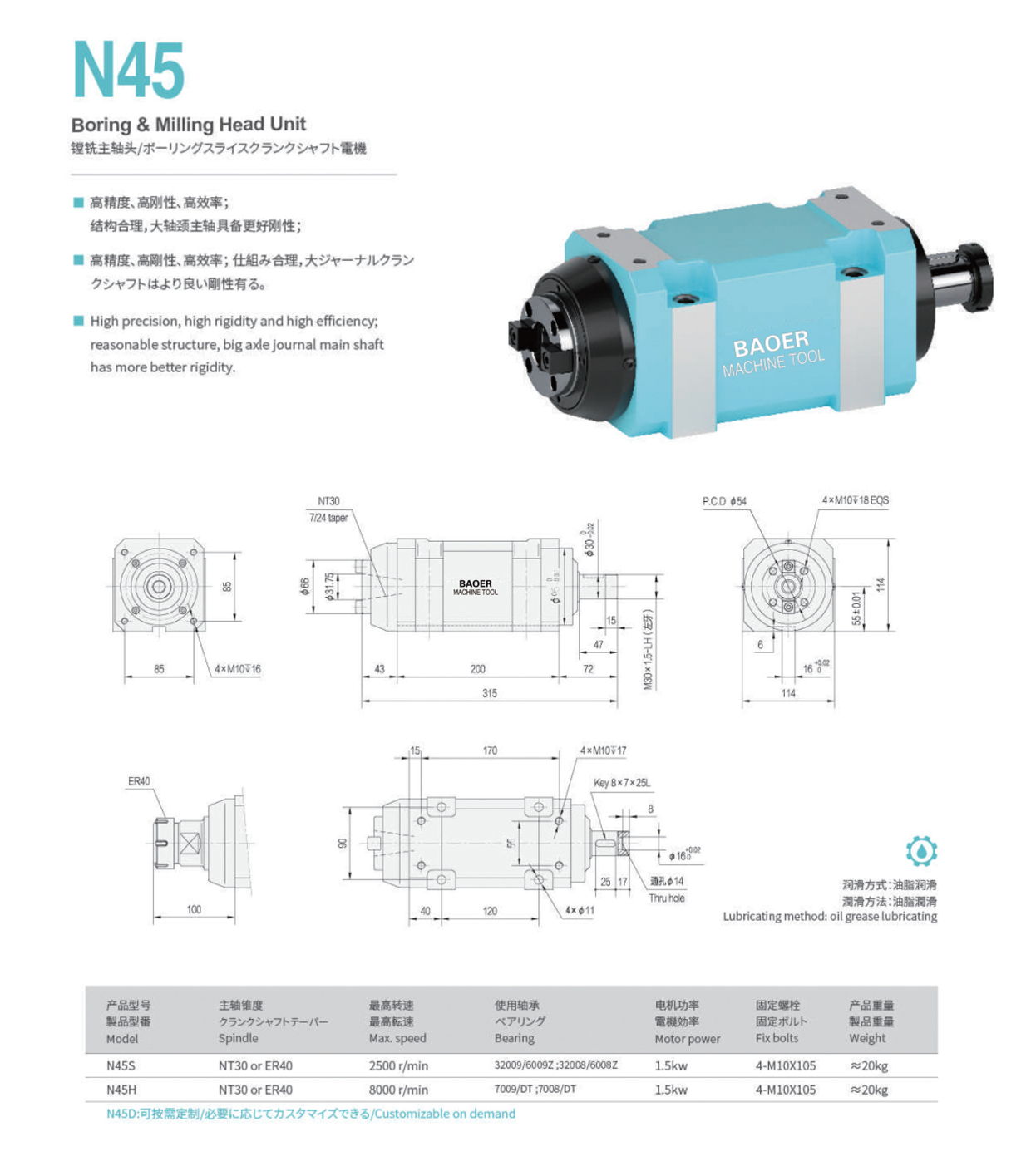 N45镗銑頭